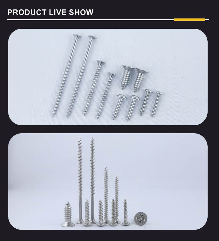 We can also customize and produce various other types of stainless steel screws, such as cut point stainless steel screws. Stainless steel screws with torx drive, pozi drive, square drive, etc. Stainless steel screws with knurl;Stainless steel screws with saw thread; Stainless steel screws with color painted head, etc.